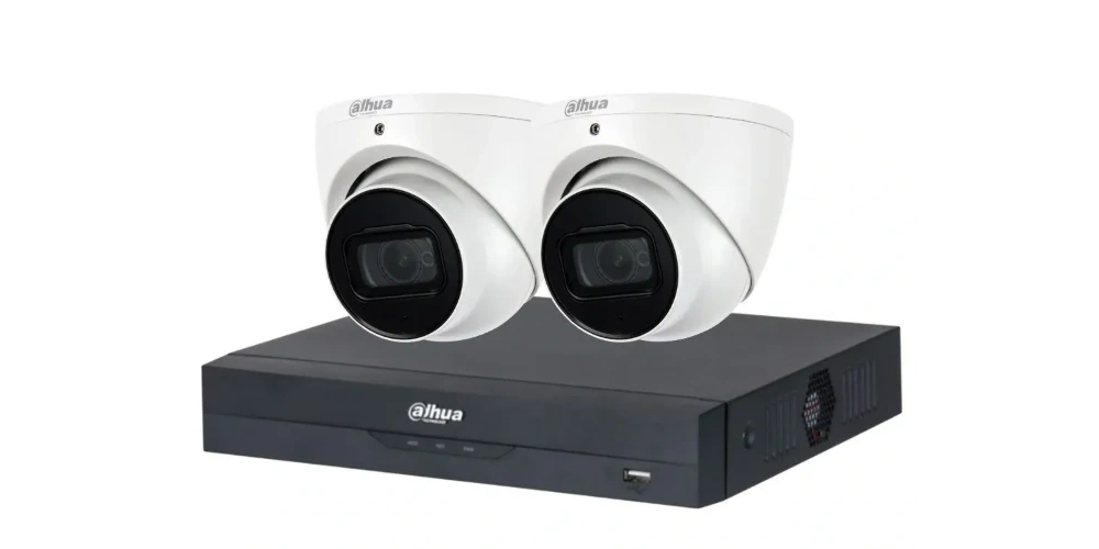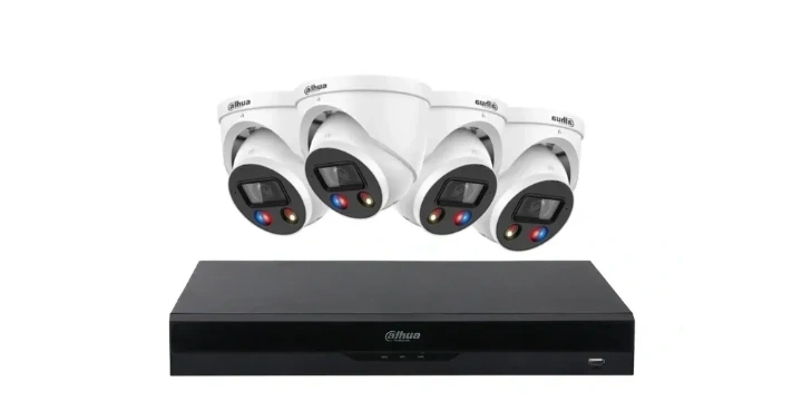 2 x Dahua 6MP AI WizSense Turret 3666 Cams, 2 x Dahua 8MP AD AI WizSense Turret 3849 and 4CH WizSense Network Video Recorder (NVR). 4TB HDD
