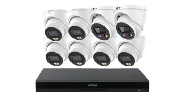 6 x Dahua 8MP AI WizSense Turret 3666 Cams, 2 x Dahua 8MP AD AI WizSense Turret 3849 and 8CH WizSense Network Video Recorder (NVR). 4TB HDD